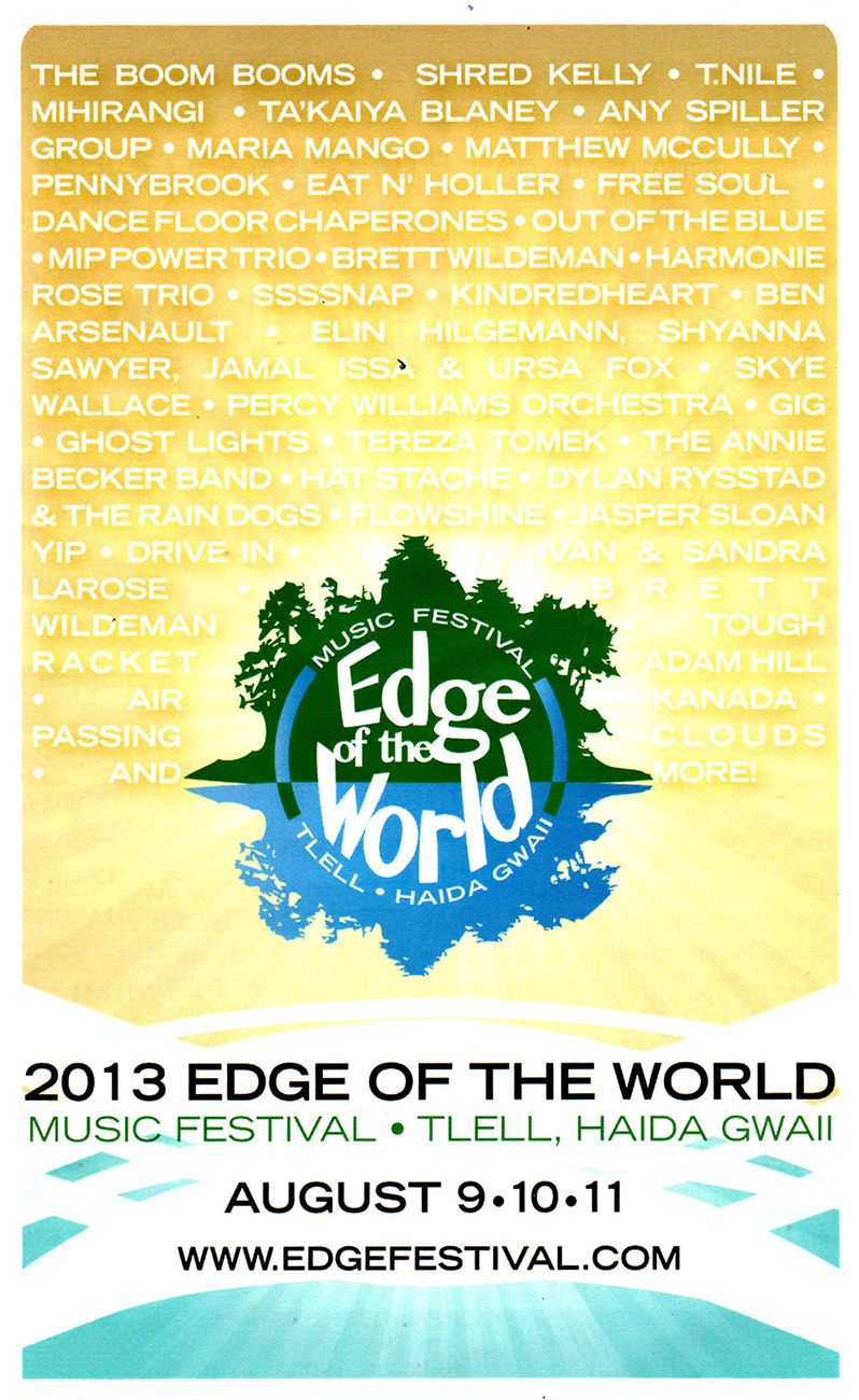 The Edge of the World Music Festival on Haida Gwaii is a singular west coast festival experience. Three days of quality music, both local and off island talent, up and coming, as well as top notch performers, is what awaits.
